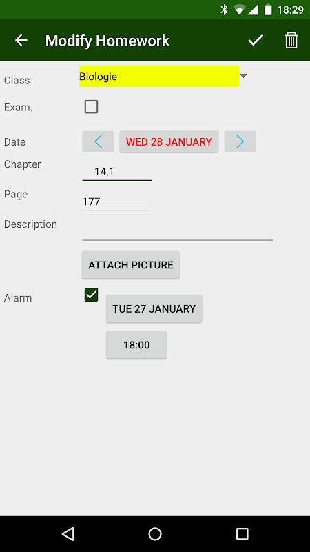 6. Dengan (pendek) Klik pada pelajaran di skrin jadual, anda boleh menentukan kerja rumah untuk pelajaran itu.