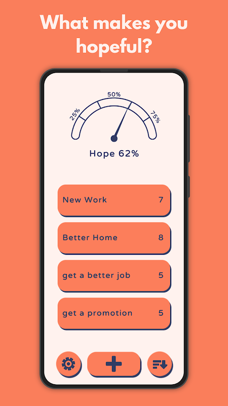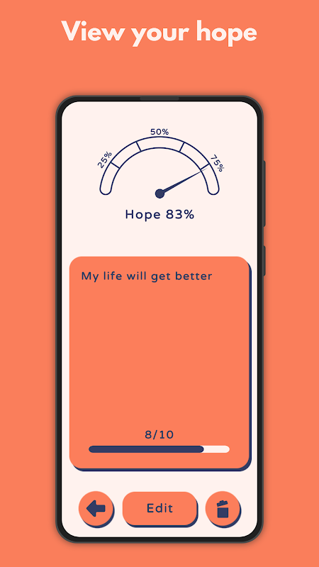 Hope Meter ialah aplikasi mudah yang membolehkan anda memasukkan pemikiran penuh harapan dan memberi makna kepada hidup anda. Tujuan apl ini adalah untuk menggalakkan anda meletakkan harapan dan sentiasa mempunyai harapan dengan memastikan meter harapan sepenuh mungkin.
