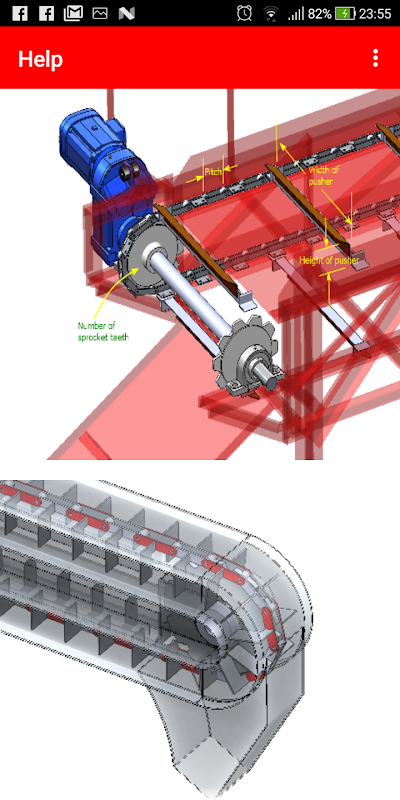Aplikasi ini sesuai untuk mengira kelajuan rantai, keupayaan penghantar rantaian seret dan memacu keperluan kuasa.