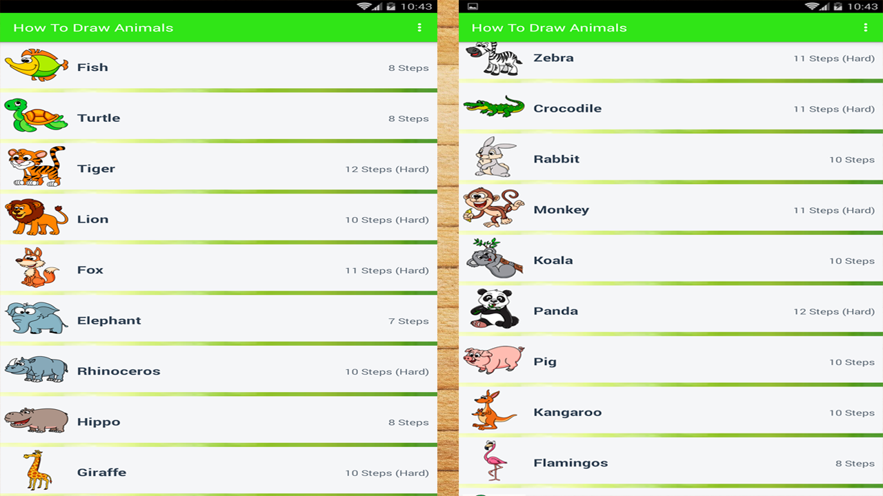 Our app contains tens of step-by-step drawing tutorials of all the most popular animals: