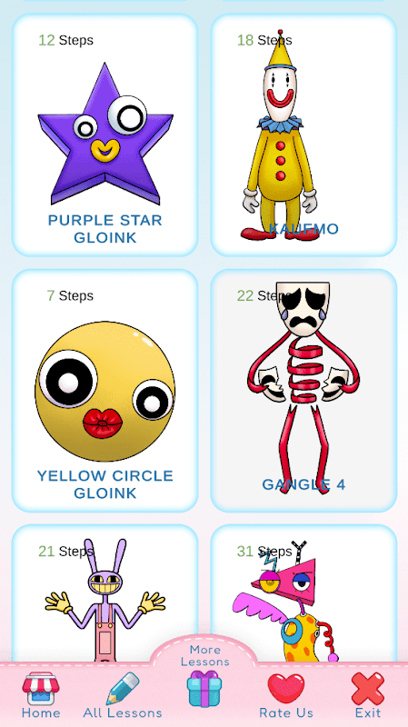 Aplikasi Cara melukis sarkas digital yang menakjubkan mengandungi pelajaran terperinci tentang cara melukis watak sarkas digital yang menakjubkan kartun popular. Dengan arahan yang mudah diikuti dan ilustrasi yang jelas, anda akan cepat menguasai teknik yang anda perlukan untuk mencipta ilustrasi watak anda yang menakjubkan.