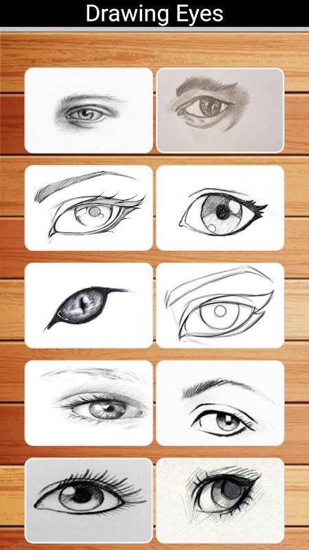 dengan menggunakan aplikasi ini anda akan dituntun untuk menggambar mata dengan mudah dengan metode langkah demi langkah yang akan mempermudah anda untuk menggambar sebuah mata yang tampak nyata dan bagus, bahkan jika nada tidak memiliki skill menggambar anda tetap bisa menciptakan sebuah gambar yang hebat dengan mengikuti intruksi dari aplikasi ini.
