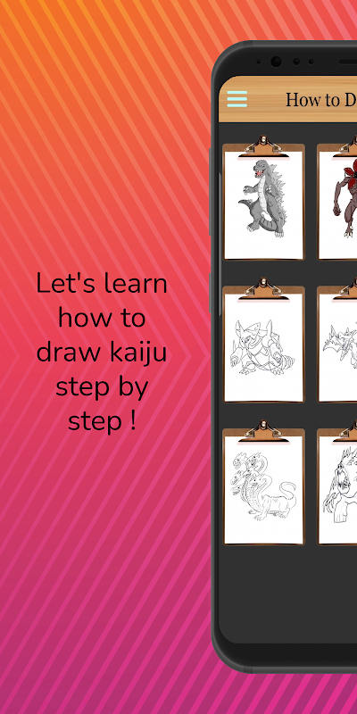 Anda boleh menggambar mega kaiju dengan cara mudah dengan mengikuti arahan melukis langkah demi langkah dalam aplikasi ini.