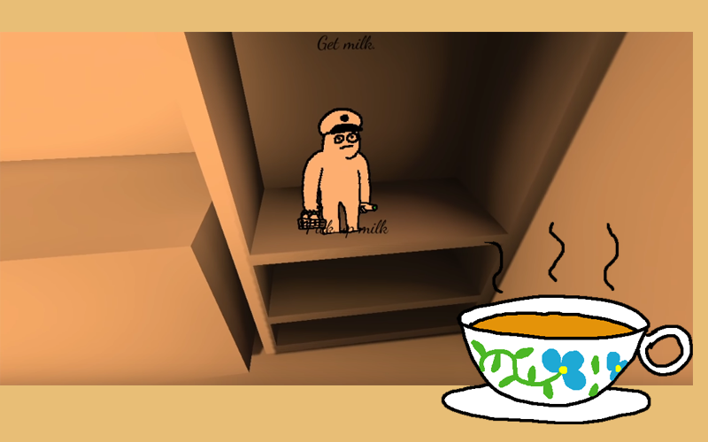 In How To Make a Cup of Tea you spend your time making a good old British cup of tea, then serving them to someone through a mysterious door.