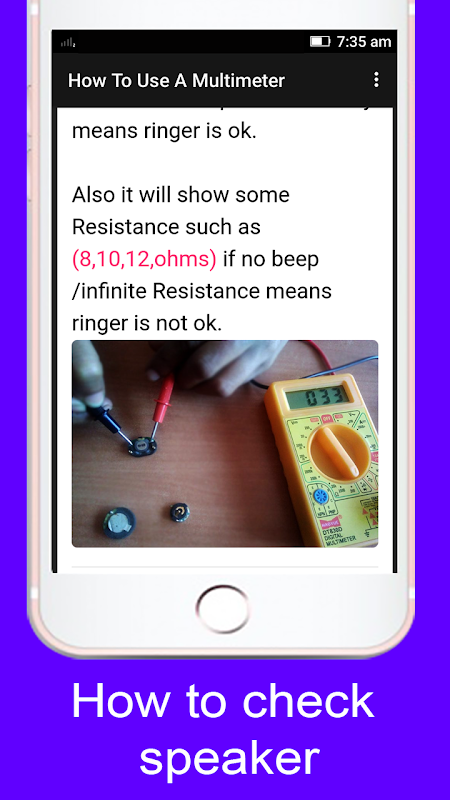 This is an application in which you can learn how to check electronics components. This app will teach you what is exactly multimeter basic working.