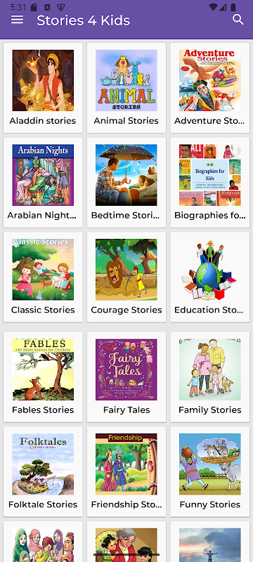 Apl ini menampilkan pelbagai kategori, termasuk cerita pengembaraan, kisah haiwan, cerita dongeng, cerita sebelum tidur, cerita klasik, cerita keberanian, kisah persahabatan dan banyak lagi.