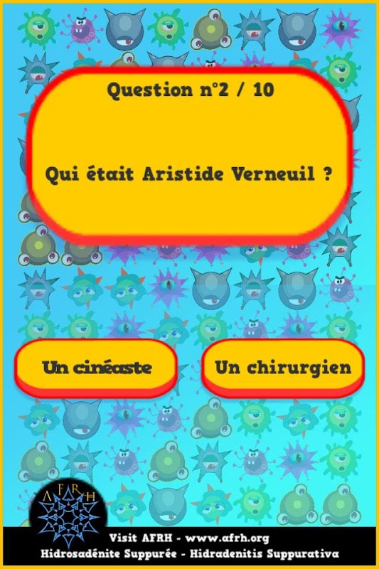 Alliant le ludique et l’instructif, ce “Serious Game” permettra aussi bien au grand public de découvrir la maladie de Verneuil, qu’aux malades de partager avec leurs proches les informations sur leur maladie et leur vécu.
