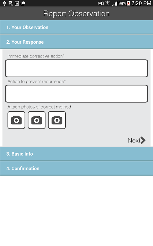 The HSE Observation tool enables users to report an issue using a mobile or tablet, on the spot to the management with the help of captured images and detailing of the situation. The safety measures and concerns differs from site to site; so this is specially taken into consideration in this application. Moreover a detailing of the best practices is also available. The reported observations are delivered to the authorised HSE managers who maintain a web based application in order to take necessary actions to avoid unsafe acts/incidents in future.