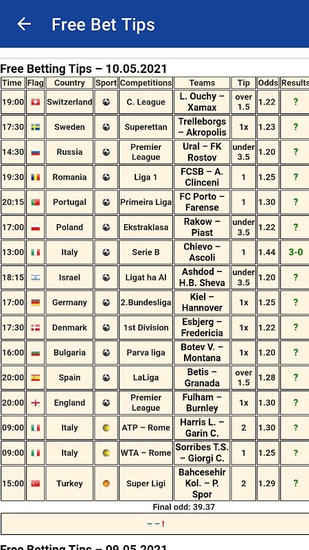 Bahagian petua pertaruhan percuma mengandungi ramalan selama 5 hari terakhir. Anda boleh melihat kejayaan kami dari sana.