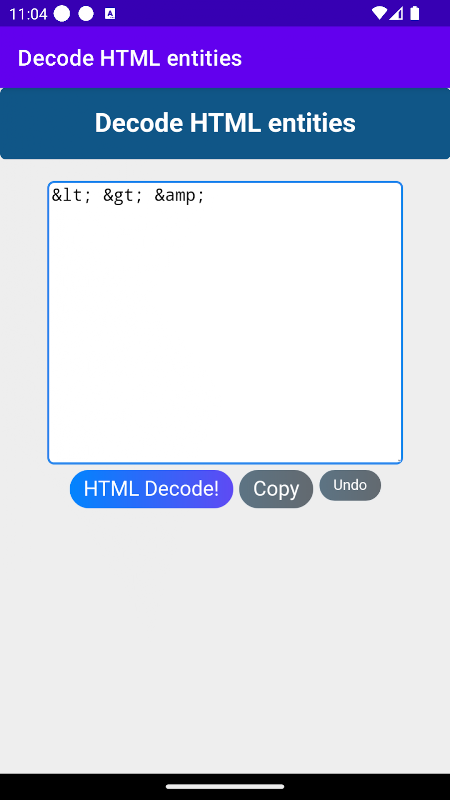 Introducing the HTML Entity Decoder, the ultimate tool for decoding HTML entities and transforming them into normal characters effortlessly! Whether you're a web developer, a content creator, or simply curious about HTML entities, our app is here to simplify the process and enhance your understanding of special characters in web pages.