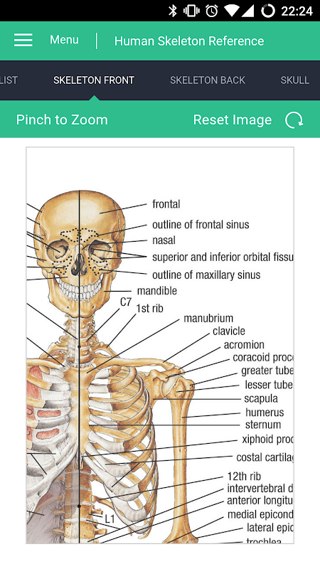 Ini aplikasi percuma menyediakan panduan yang mendalam tentang anatomi rangka manusia menampilkan kandungan terperinci berkualiti tinggi dan imej dengan cara yang baik dibentangkan dan mudah untuk mengemudi.