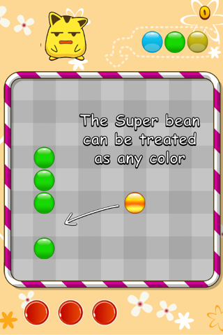 1: Match 5 or more of the same color beans together(horizontal, vertical or diagonal ).