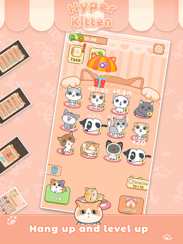 Merge your kittens to earn money and build your kitten town.