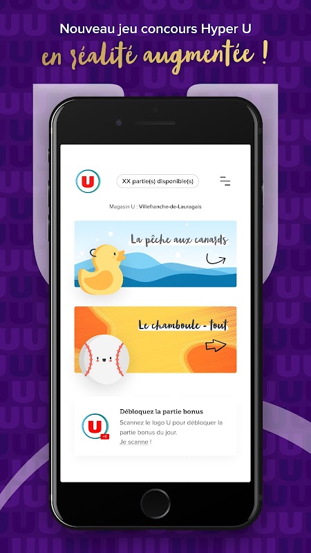 Une nouvelle partie est disponible chaque jour à l’ouverture de l’application et une partie est offerte chaque jour au scan du logo U.