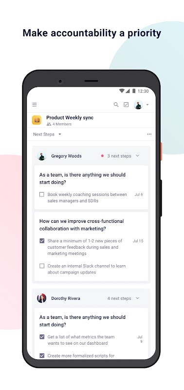 Create customizable meeting agendas for your one-on-ones, team meetings and other recurring meetings.