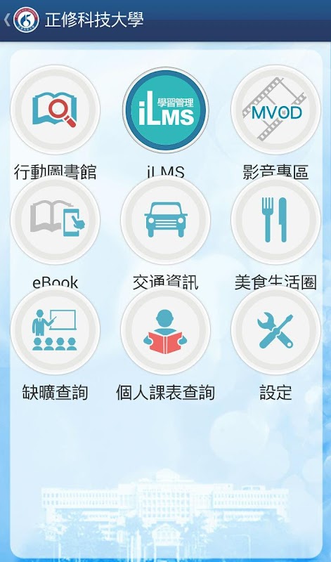 「i正修」為「正修科技大學」師生提供整合多元服務,可隨時隨地查詢與預約圖書館的豐富館藏、學校各單位/系所資訊,還提供校園附近交通、美食、及貼心的個人化服務
