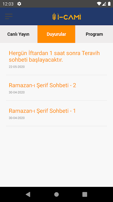 Aplikasi yang dapat kita gunakan bersama-sama dengan semua anggota keluarga kita, diberikan kepada kita, agar kita tidak dapat kehilangan program yang kondusif untuk pengembangan kehidupan rohani kita seperti aktiviti Jumaat, Tarawih dan Kandil- Ceramah, Menanggapi, dan Mevlid-i Sharif yang tidak dapat datang ke masjid kita kerana keperluan. Aplikasi ini, yang akan berperanan dalam perpaduan rohani, akan dimuat turun ke telefon anda dan menyampaikan kepada maklumat anda bahawa anda boleh mendapat manfaat daripada perkhidmatan kami dan kami mengucapkan selamat dan bahagia di dunia dan akhirat.