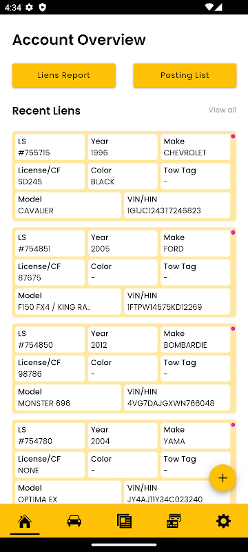 Pesan lien baharu, uruskan semua lien sedia ada anda, tunjukkan bukti jualan lien kepada pemilik berdaftar apabila mereka datang untuk mengambil kenderaan dan mengenakan bayaran lien kepada mereka.