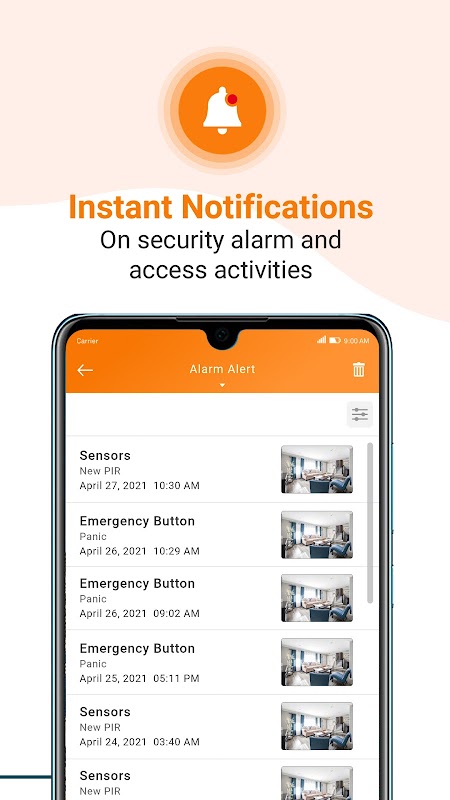- Terima pemberitahuan tekan segera apabila penggera dipicu