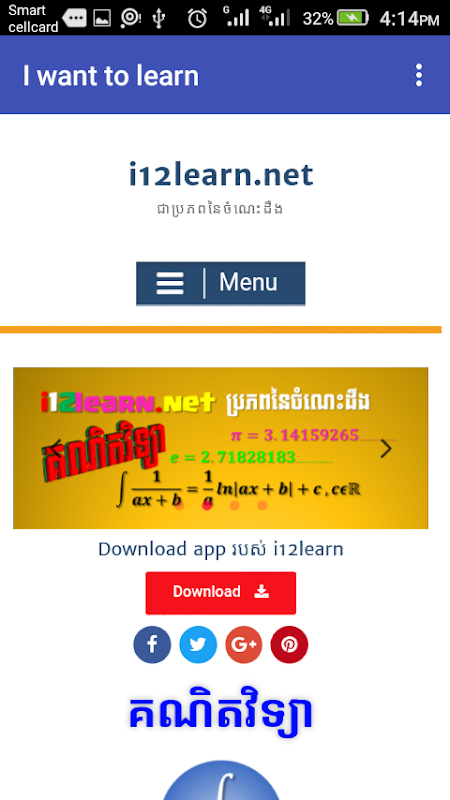 I want to learn is an app for sharing all kinds of knowledge such as Mathematics Khmer language Physics Chemistry Biology Earth Science History Technology Computer English language and other subjects.