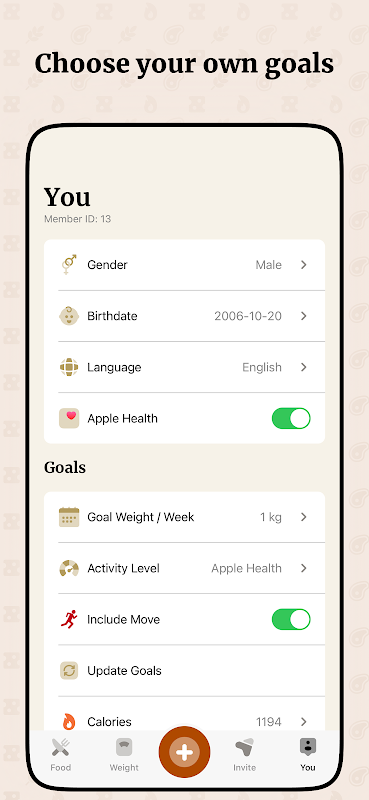 – Matlamat harian: Tetapkan berat sasaran dan matlamat mingguan anda, dan iCal akan mengira kalori, karbohidrat, lemak, dan protein harian anda.