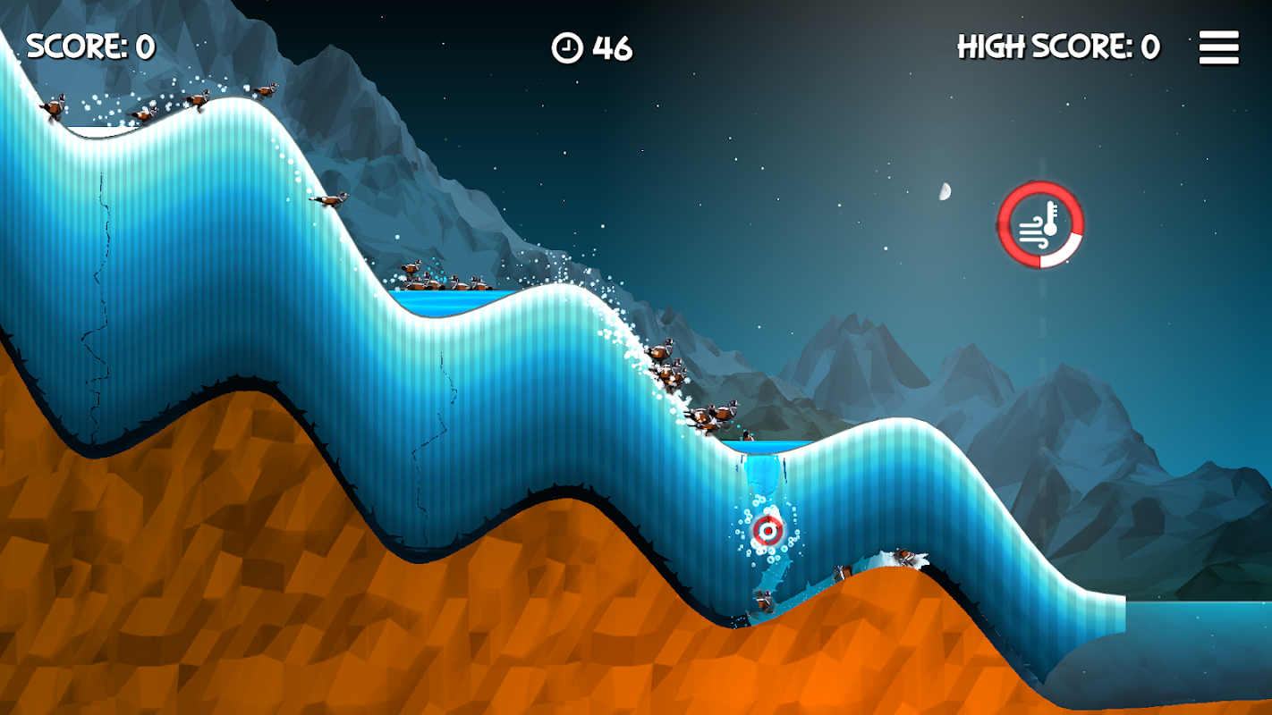 Memberi makan penguin! Menukar saiz lapisan ais itu untuk mendapatkan mereka untuk ikan.