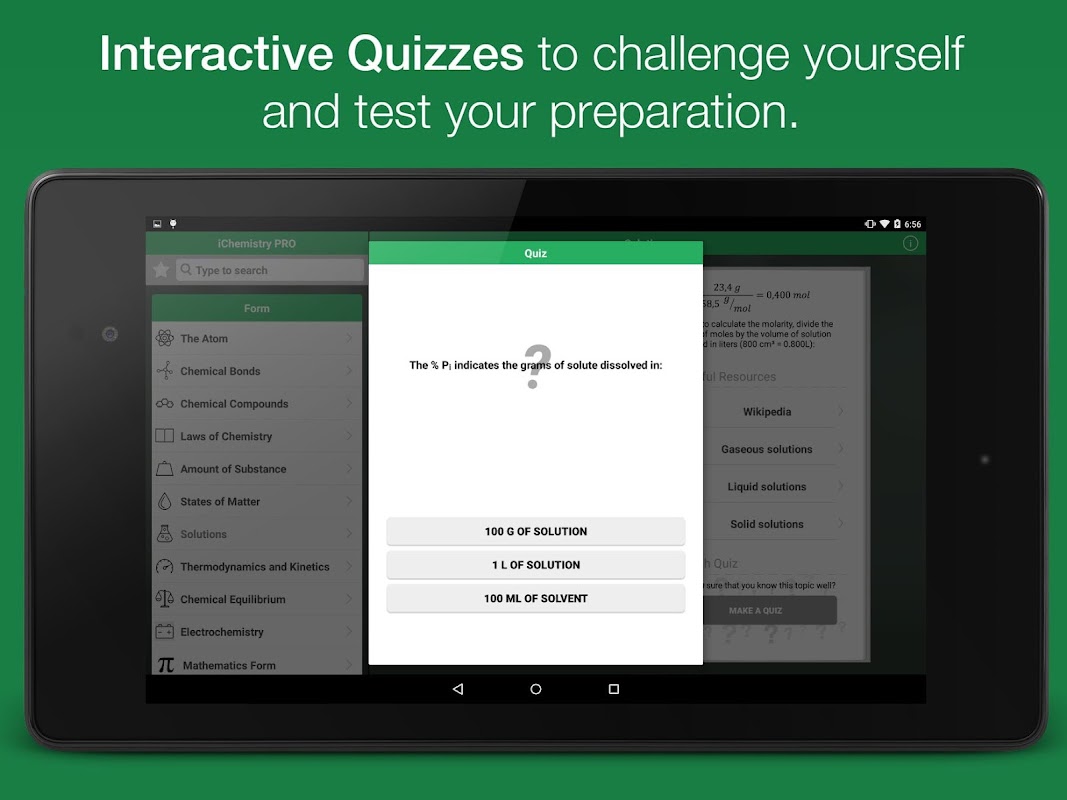 iChemistry is your personal chemistry tutor. It is used by millions of students every day, and it’s the only app about chemistry that includes everything you need to successfully pass your exams.