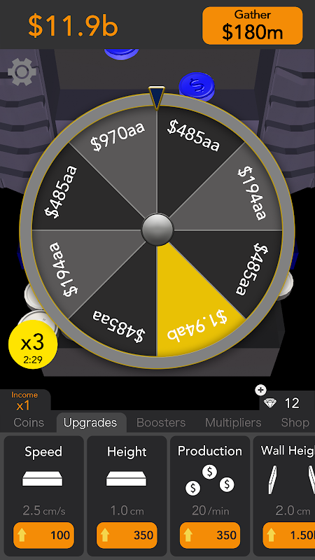 Apabila anda menggunakan penggalak, penolak dipercepat, dan lebih banyak duit syiling dihasilkan.