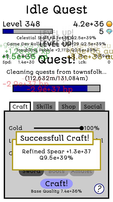 Questing! Ia adalah apa yang kita suka, dan ia adalah apa yang kita lakukan. Mulakan dengan mendapatkan pencarian dari penduduk bandar. Kemudian, bergegas ke lokasi questing yang ditetapkan dengan alas kaki pilihan anda. Apabila di sana, membunuh raksasa yang diperlukan dengan flip pedang anda, dan kembali ke bandar. Charm penduduk bandar dengan azimat ajaib anda dan mengumpul timbunan besar emas! Gunakan barang rampasan yang baru ditemui anda bagi mencipta gear baru, membolehkan anda dengan mudah menangani usaha yang mencabar yang akan datang ...