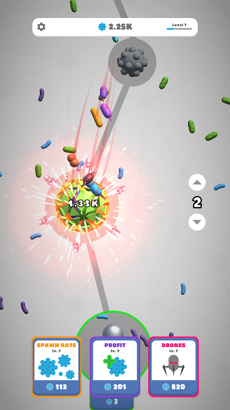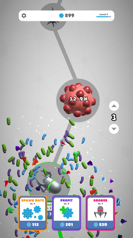 Spend your cells to buy powerful drones to automatically attack the viruses.