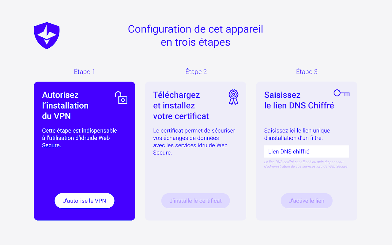 IDRUIDE Web Secure menggunakan perkhidmatan VPN yang membolehkannya menangkap semua trafik daripada peranti dan menghantar permintaan DNS melalui URL yang telah dikonfigurasikan untuknya. IDRUIDE WebSecure menggunakan API ini bukan untuk menghalakan trafik melalui pelayan VPN jauh, tetapi untuk memastikan bahawa semua permintaan DNS adalah selamat dan dihantar ke pelayan DNS yang dipercayai, dikonfigurasikan oleh pengguna atau oleh pentadbir jika peranti itu didaftarkan dalam Idruid Sparkle MDM .