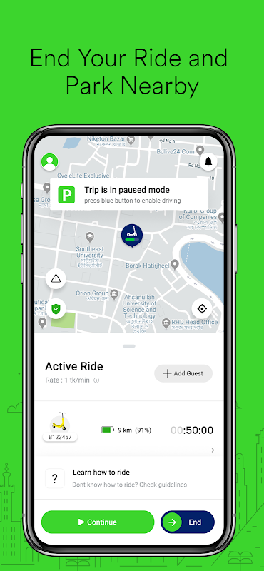 Ignit memberi anda akses kepada Skuter elektrik yang dikongsi boleh diambil dan dihantar ke mana-mana sahaja. Gunakan Ignit untuk ulang-alik kerja anda, untuk melawat bandar semasa bercuti, atau semasa menjelajah bandar dengan rakan-rakan.