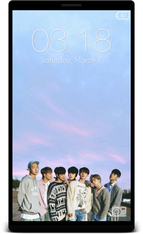 This lock screen is based on iKon theme. There are many iKon HD backgrounds in this app. You can unlock your phone using different methods like Slide to unlock, enter passcode, draw pattern, pin, etc.