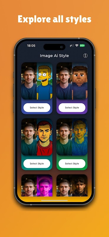 Imej AI Style mengubah foto anda menjadi imej kartun, anime atau avatar yang diilhamkan menggunakan AI. Pilih gaya, muat naik foto dan apl akan menjana versi baharu dalam beberapa saat. Tiada kemahiran menyunting diperlukan.