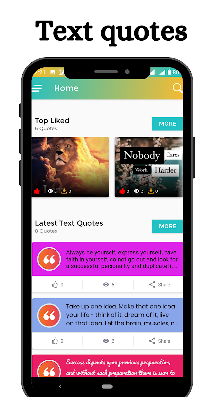 Aplikasi juga memuatkan fitur membuat Kutipan yang memungkinkan untuk menulis ucapan, puisi, emosi, pemikiran atau apa sahaja jenis tulisan anda dan merancangnya menjadi tulisan yang menakjubkan dengan menggunakan alat reka bentuk kreatif. Jadikan petikan anda menarik dengan latar belakang yang indah.