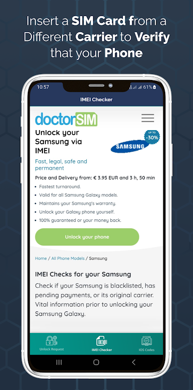 Ucapkan selamat tinggal kepada sekatan telefon Terkunci. Nikmati kebebasan telefon yang tidak berkunci dengan IMEI Unlock - Phone Unlock. Muat turun sekarang dan buka kunci dengan mudah!
