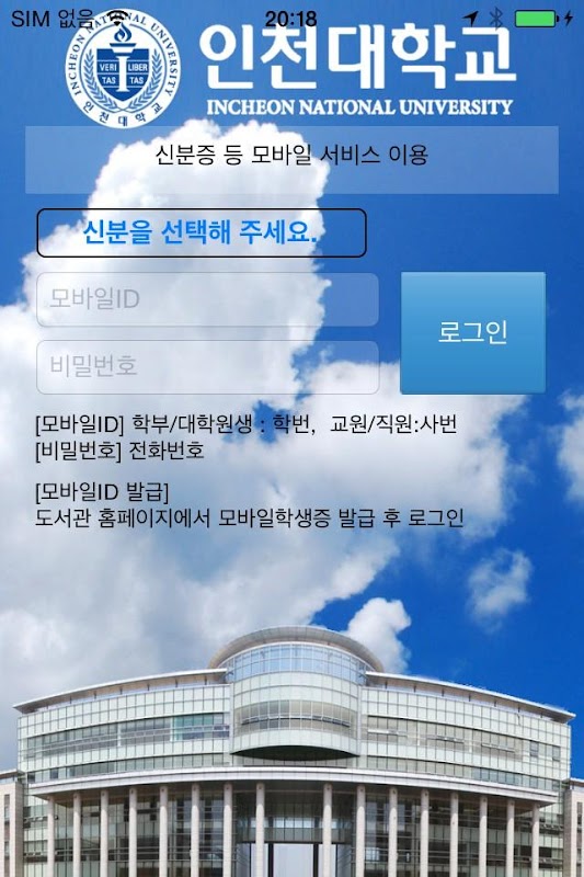Universiti Incheon adalah ID kad kad / ID pintar.Boleh didapati di perpustakaan.
