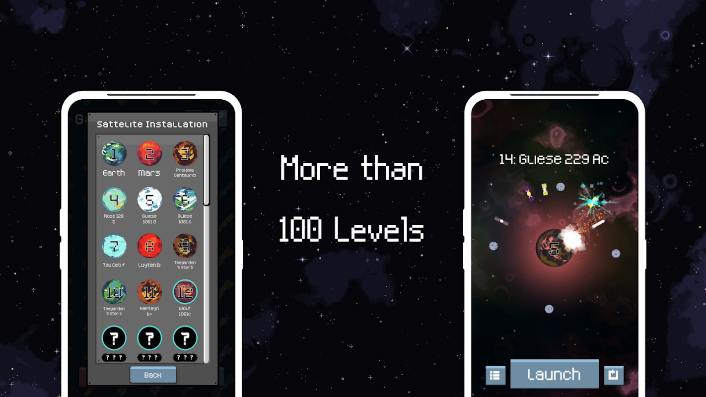 Lancarkan roket dan jajah planet untuk mengembangkan empayar manusia. Gunakan satelit untuk menuai bintang dan membuka kunci kulit. Terokai dunia terbuka dan elakkan asteroid berbahaya dan lubang hitam.