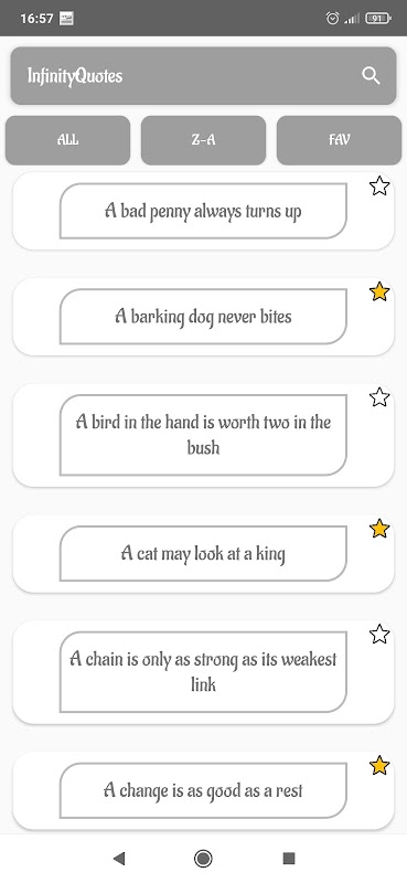 - Buat senarai petikan kegemaran anda sendiri dengan menekan butang bintang pada setiap petikan yang anda suka.