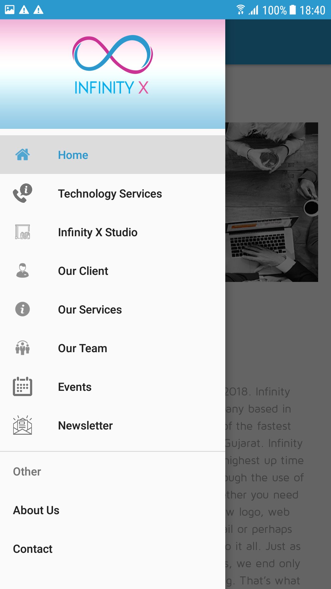 Infinity X is a leader in the best quality web design, web hosting, web development, digital media marketing, social media, animated videos, radio advertising, outdoor advertising, Search Engine Optimization (SEO), mobile applications featuring iOS, Android and Windows Mobile, e-commerce, e-books, logo design, brochure design, stall design, Google Google Adwords, facebook advertising, server administration, big data analytics, and so much more under a single roof in Ahmedabad India.