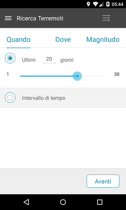 App juga memaparkan seismicity Itali dari 2005 dan seterusnya, dalam seksyen Gempa Bumi Research. Anda boleh mencari untuk gempa bumi: