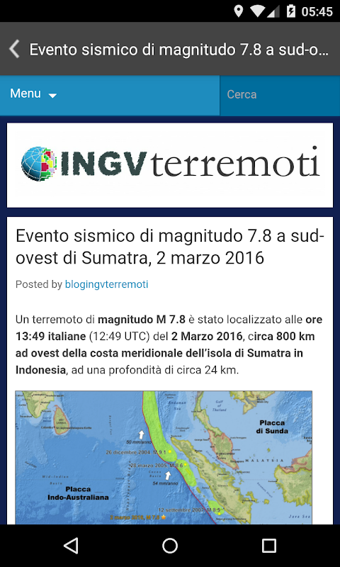 Perhatian khusus telah dibayar kepada maklumat saintifik mengenai gempa bumi; adalah seksyen hadir berhubung dengan blog INGVterremoti ingvterremoti.wordpress.com itu.