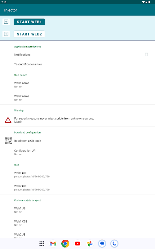 Ia membolehkan anda memuat naik keseluruhan tapak dan tetapan skrip anda dengan pantas daripada fail JSON yang URInya boleh diambil menggunakan kod QR.