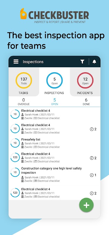 Jemput ahli pasukan anda dan lakukan pemeriksaan serentak dengan pasukan anda. Checkbuster memperkemas proses kualiti & keselamatan anda. Mula sekarang!