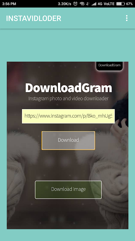 just copy the link of image from instagram and past it in the text box provided in the "instavidloder pro" app