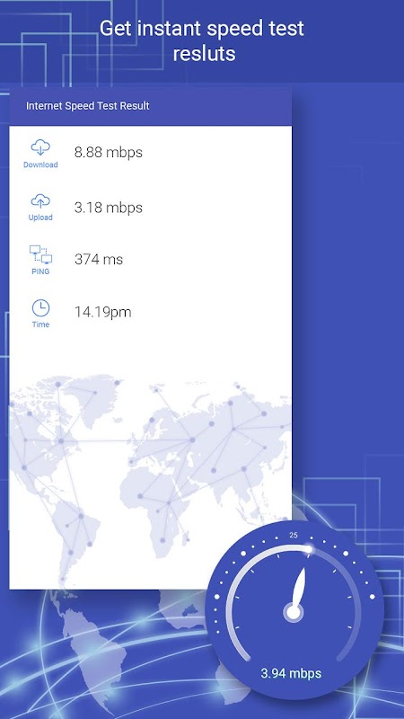 Aplikasi "ujian kelajuan Internet" membantu anda untuk memulakan muat turun anda, memuat naik dan kelajuan ping mudah.