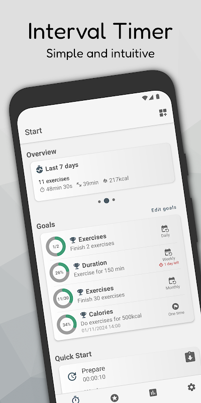 Berseronoklah dengan latihan senaman anda dan capai matlamat kecergasan anda dengan pemasa selang waktu.