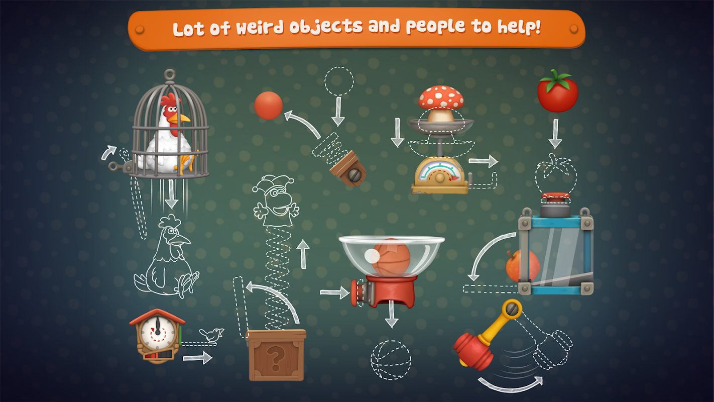 Dalam permainan ini anda boleh mencipta ciptaan gila anda sendiri yang menyeronokkan! Dengan bantuan Inventioneers, pembantu kecil kami yang mempunyai ciri unik, anda boleh mencipta ciptaan yang menyeronokkan, kreatif dan selalunya agak pelik. Banyak ciptaan disertakan dalam permainan, lebih banyak anda menyelesaikan lebih banyak bahagian yang anda terima untuk ciptaan anda sendiri!