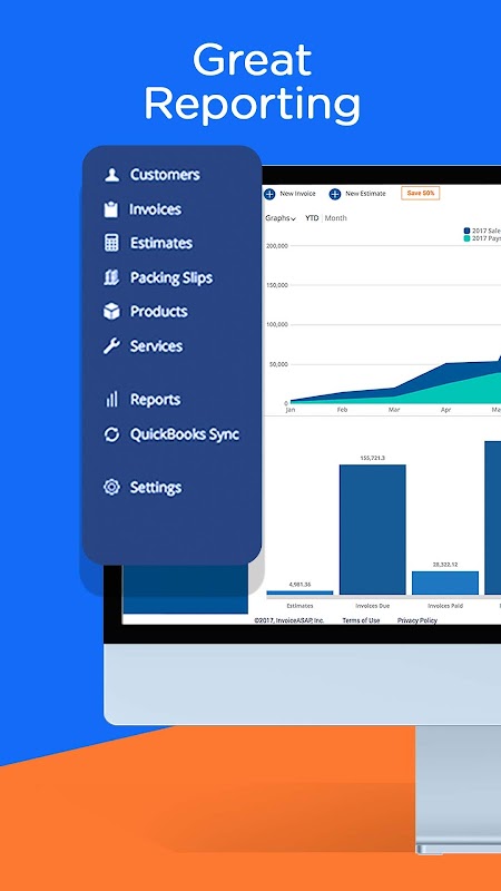 Invois ASAP ialah penjana invois yang cepat dan profesional dengan storan awan yang selamat. Invois pelanggan anda dengan mudah dan buat anggaran terus daripada peranti mudah alih anda, menjimatkan masa kerja. Invois ASAP ialah apl invois #1 untuk memudahkan kerja Tukang Paip, Juruelektrik, Kontraktor, Landskap dan Tukang Kayu serta mengurus sebarang perniagaan perkhidmatan rumah, seperti HVAC/Pemanas & Udara.