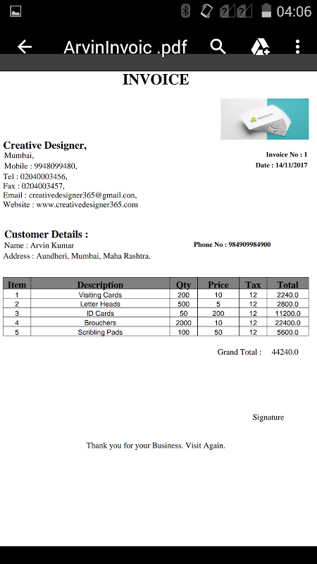 Hey Adakah anda sedang mencari membuat invois anggaran dari telefon bimbit? Software Billing invois sedia untuk you.By menggunakan pembuat invois ini untuk membantu mewujudkan bil anda dalam format yang berbeza termasuk menambah Logo untuk banyak invoice.Now anda daripada orang tidak menggunakan / mempunyai komputer peribadi, komputer riba tetapi kini invois hari dan anggaran yang memerlukan untuk setiap Mans Perniagaan dengan menggunakan aplikasi kecil ini, anda boleh membuat bil dalam satu minit dengan template.